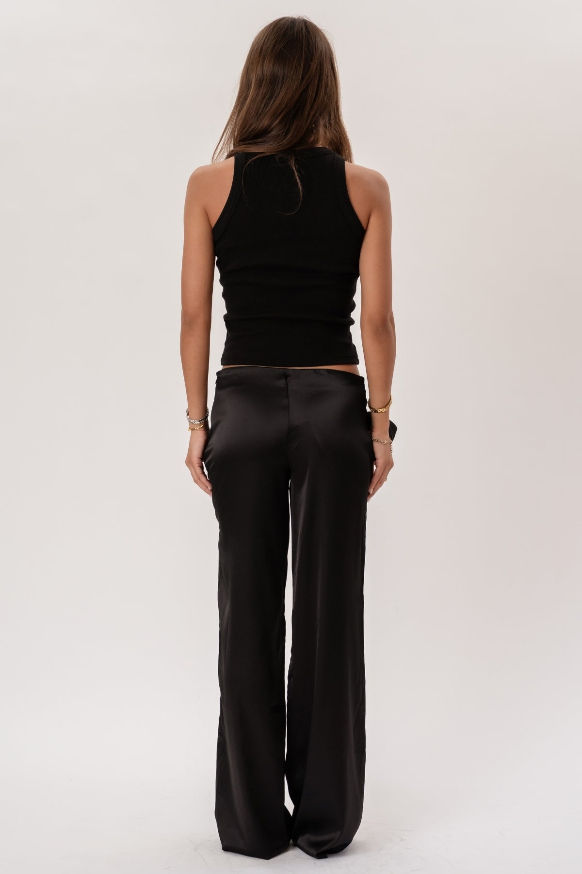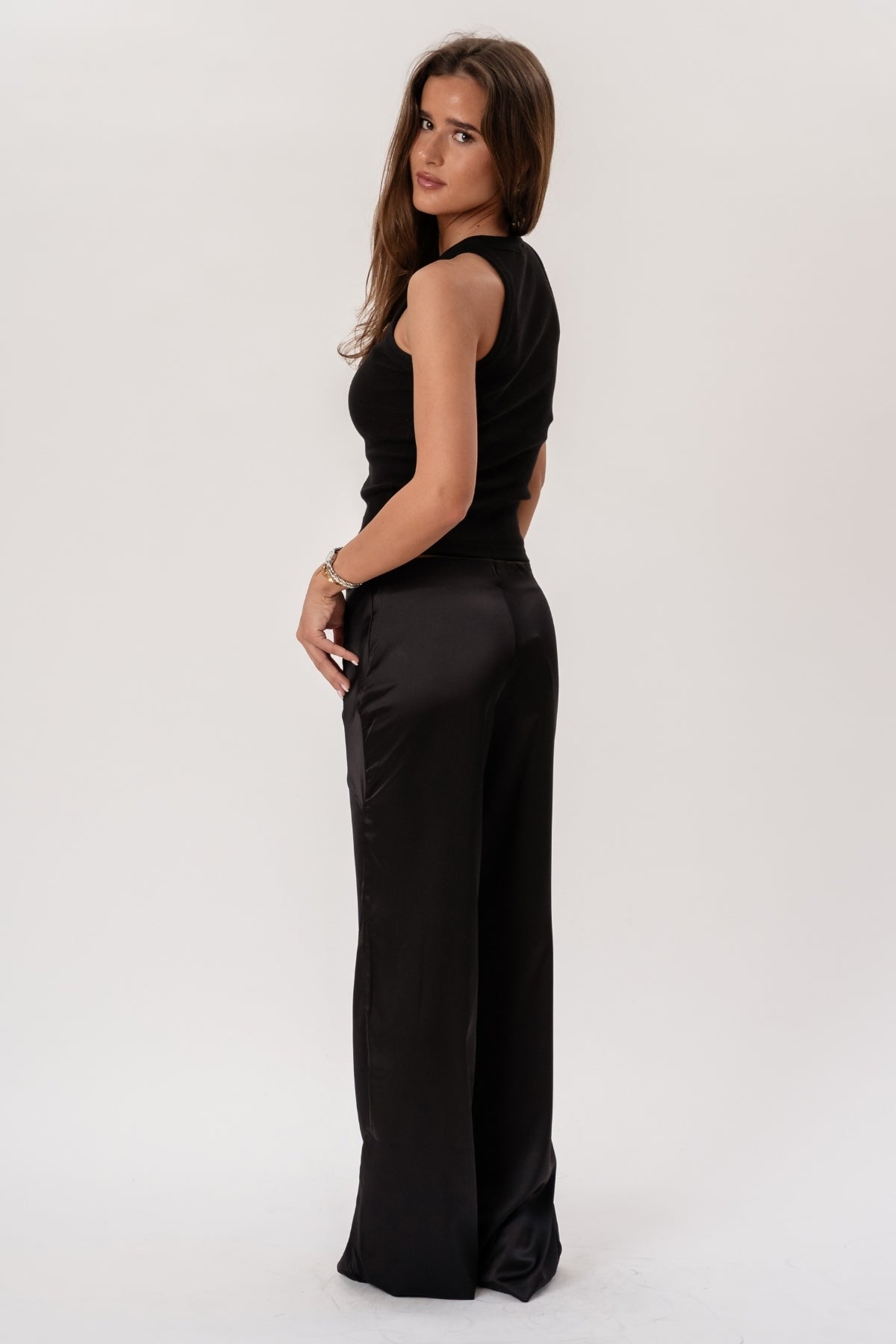 Smigrende pasform med høj talje: Designet til at fremhæve din silhuet og skabe en lang, mager linje.