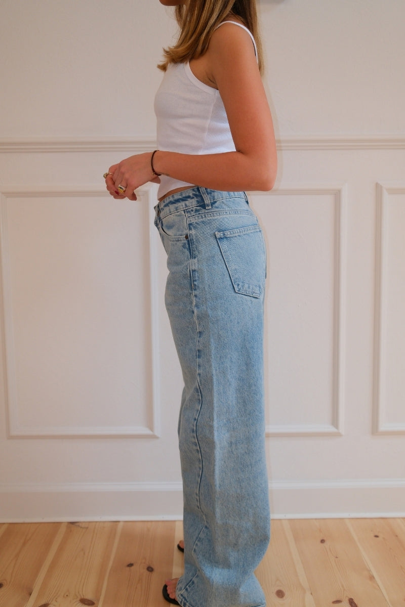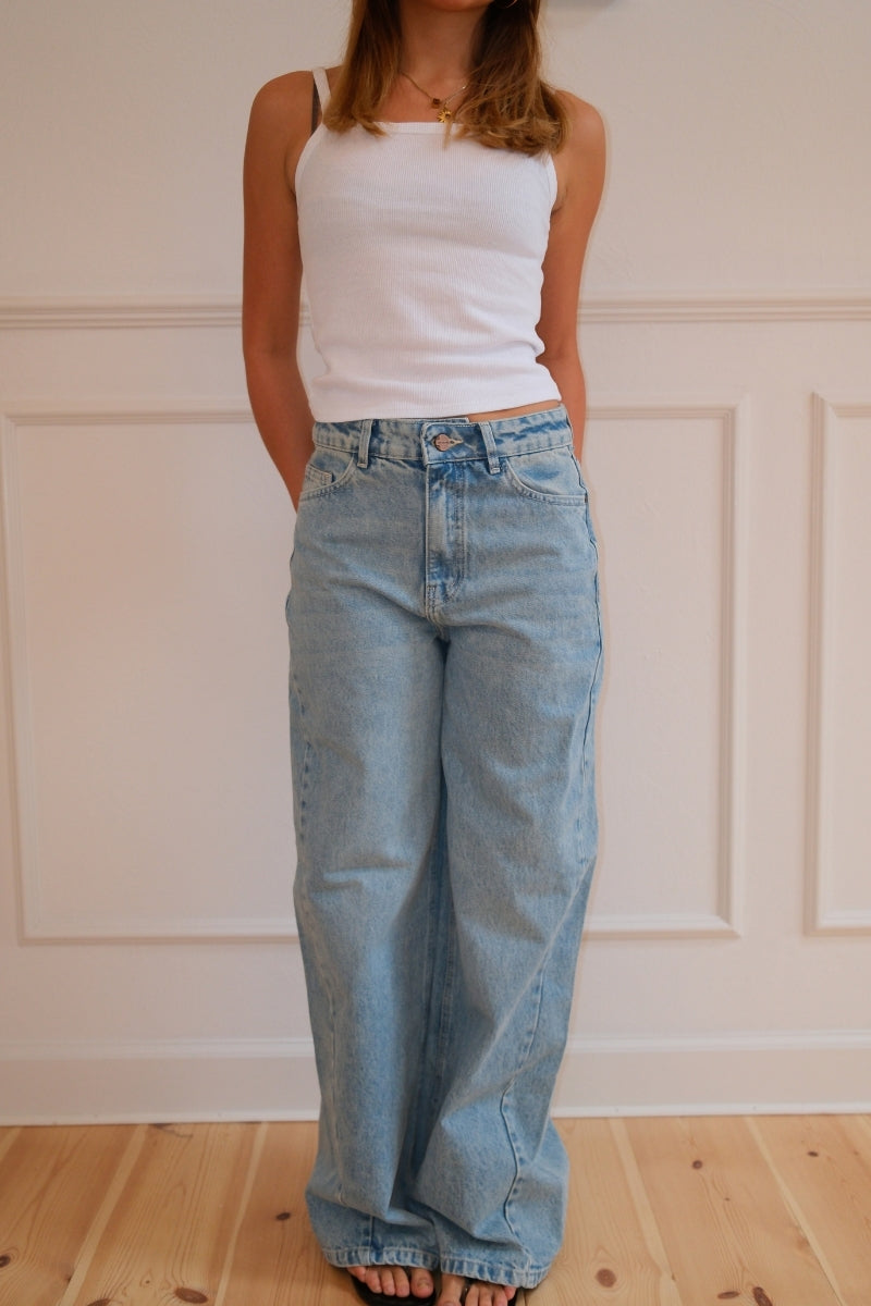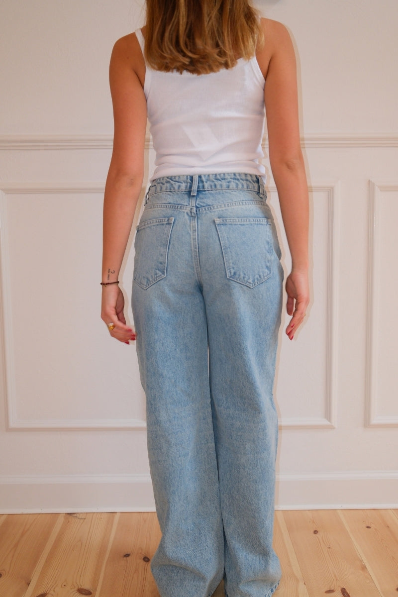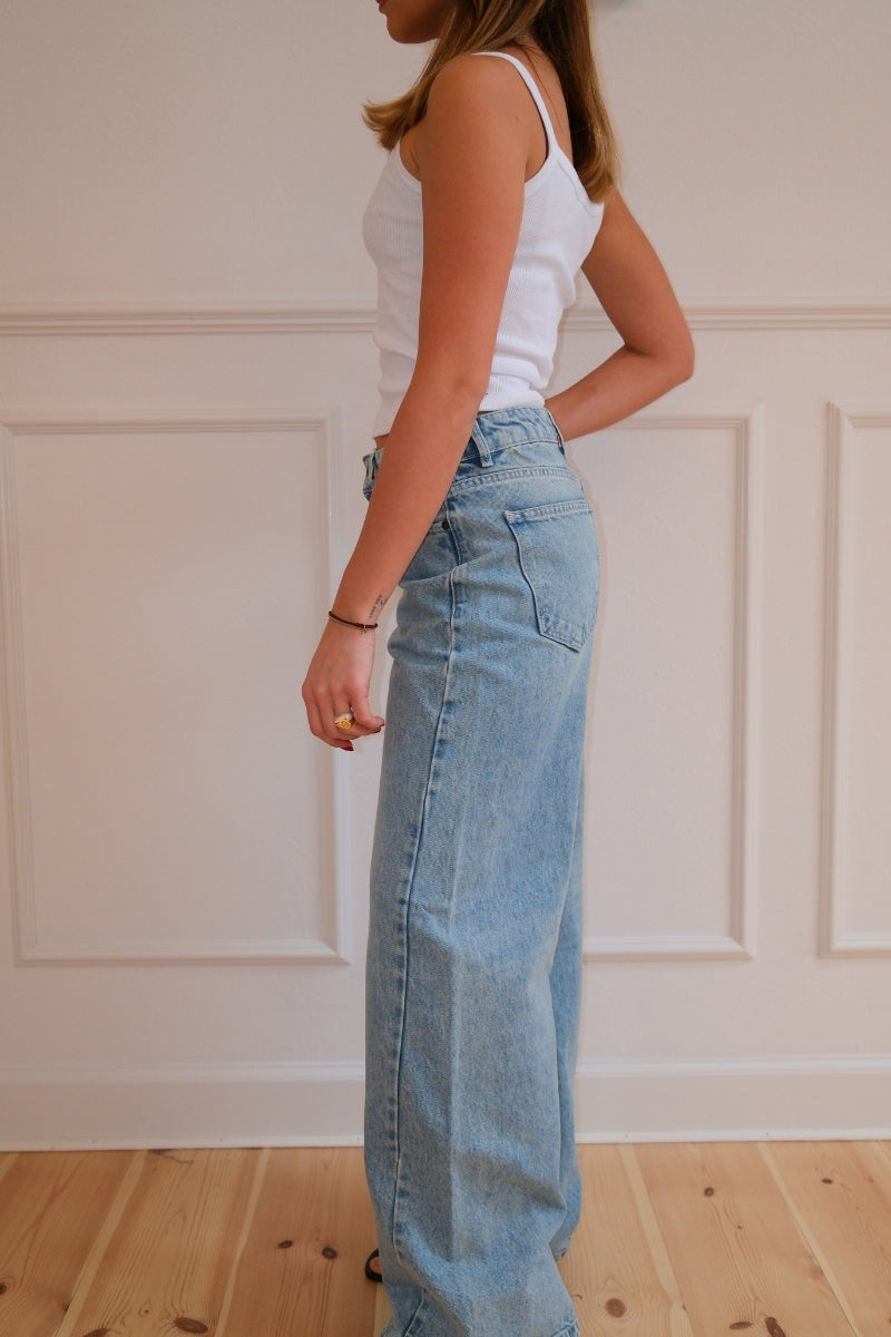 Klassisk lyseblå vask: En tidløs, alsidig farve, der giver et perfekt vintage-inspireret look.